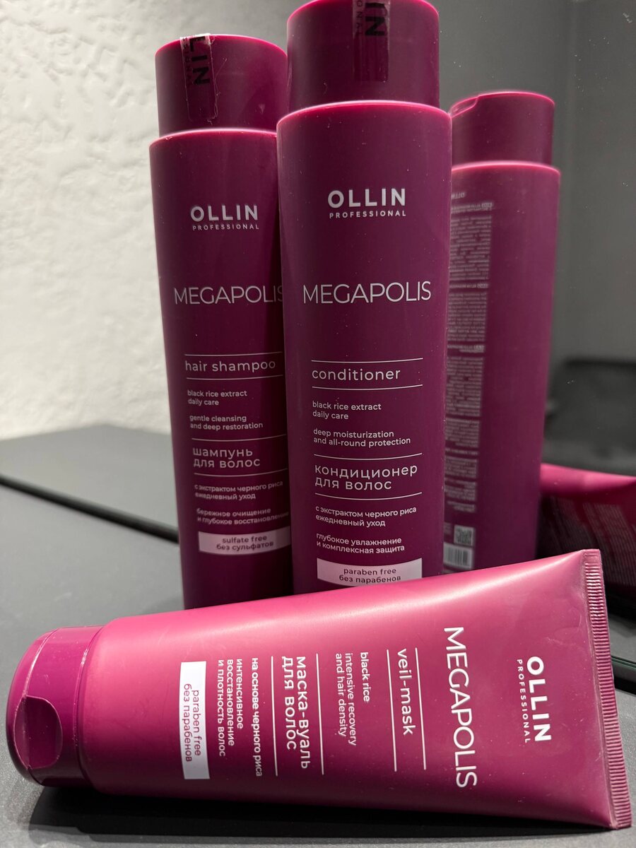Обзор средств Ollin Megapolis с чёрным рисом: Шампунь хорошо очищает кожу и волосы, не пересушивая по длине. Приятный аромат и текстура, волосы после использования выглядят ухоженными и блестящими. Линейка подходит для ежедневного применения. Кондиционер облегчает расчёсывание и придает волосам мягкость. После применения волосы послушные и меньше пушатся. Приятный запах и лёгкая текстура! Глааный плюс — средство не утяжеляет волосы. Маска‑вуаль Ollin Megapolis с чёрным рисом. Интенсивное увлажнение, волосы блестят и легче укладываются при регулярном применении. Подойдет и для тонких волос. Для волос, которым нужно дополнительное питание и восстановление.