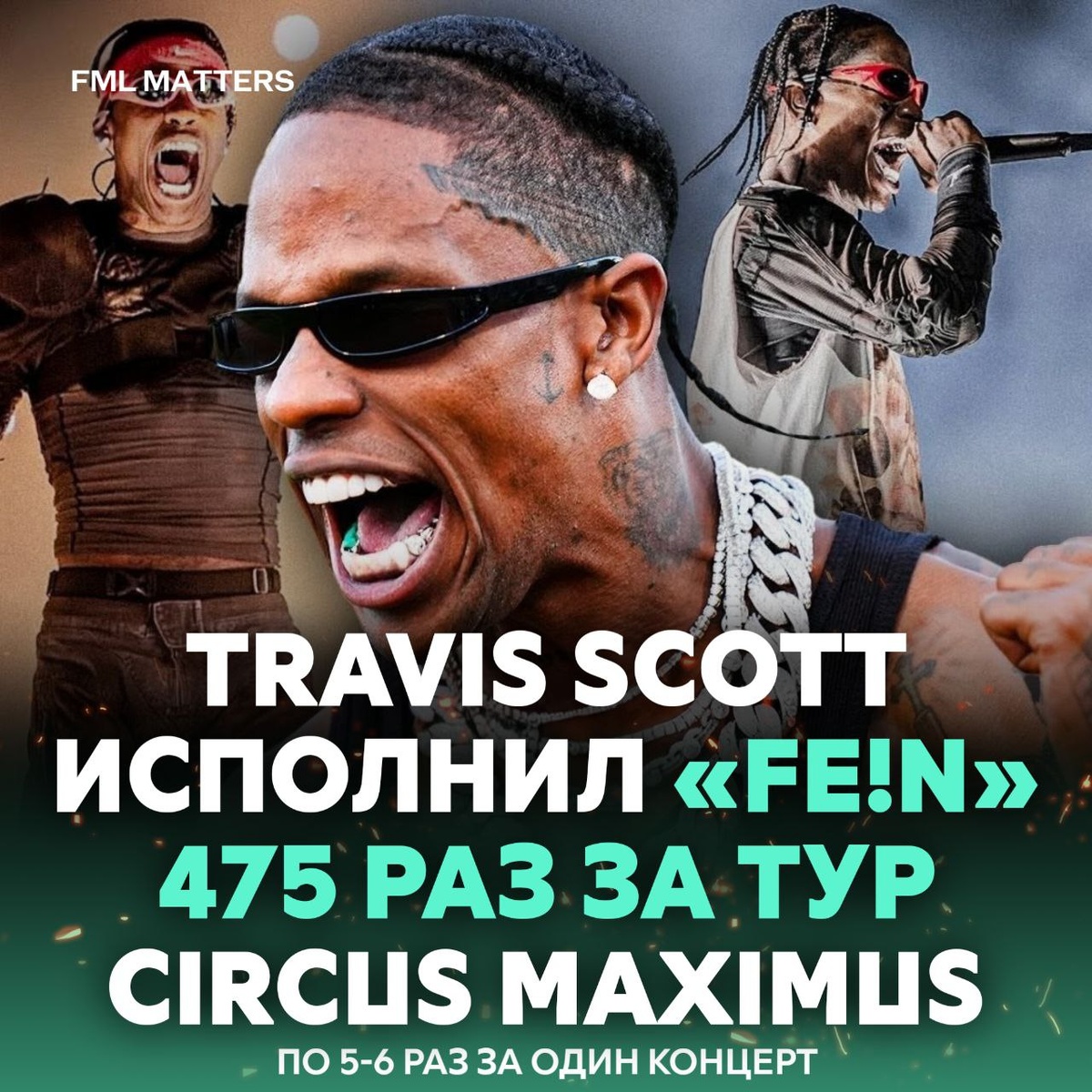 В ответ на пост 😭 TRAVIS SCOTT ИСПОЛНИЛ «FE!N» 475 РАЗ ЗА ТУР! За время мирового тура Circus Maximus Трэвис Скотт исполнил трек «FE!N» рекордные 475 раз на 87 концертах, в среднем по 5-6 раз за вечер, и произнес слово «fein» примерно 29 925 раз. Ты знаешь что такое безумие? 👀 💀 FML MATTERS