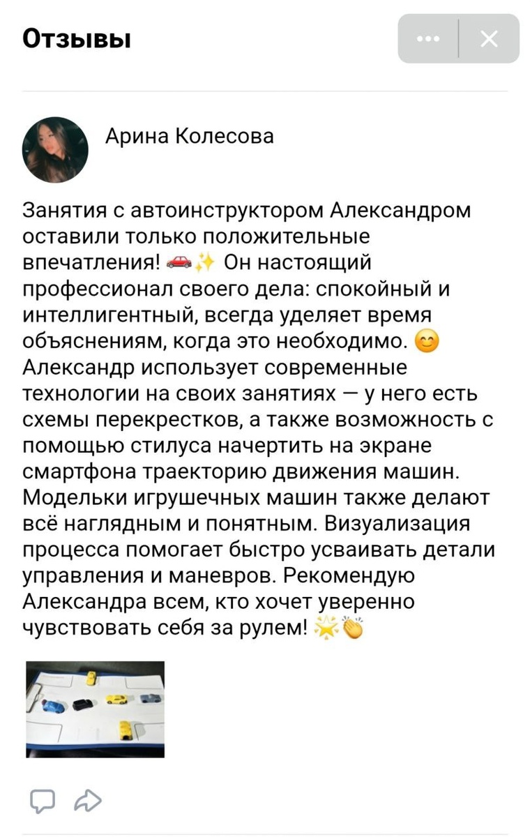 Арина, огромная спасибо за такой развернутый и душевный отзыв! 😊 Мне безумно приятно, что ты оценила наш с тобой формат занятий. Ты абсолютно права — я убежден, что спокойная атмосфера и детальное объяснение — это фундамент уверенности за рулем. А современные технологии и наглядные пособия (те самые схемы на планшете и модельки машинок 🚗) помогают буквально «прочувствовать» дорожную ситуацию до того, как она возникнет в реальности. Твой прогресс и уверенность за рулем — лучшее тому доказательство! 💪 Именно такой, осознанный и комфортный, подход к вождению я предлагаю всем своим ученикам. Хотите также? 😉 Записаться на уроки вождения в Костроме на автомобиле с АКПП можно прямо онлайн. Переходи по ссылке, выберем удобное время и начнем твое путешествие к уверенному вождению! 🔗 https://dikidi.net/1829681
