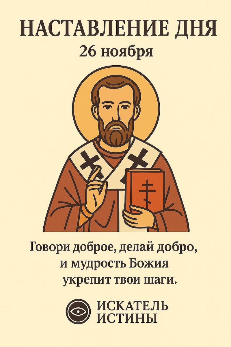 ☦️ Наставление дня — 26 ноября Память святителя Иоанна Златоуста Святитель Иоанн Златоуст наставлял людей мудрым словом и чистой, огненной верой. Он учил, что истинное богатство — в добрых делах и сердце, наполненном любовью. Пусть и твой день будет светлым и разумным. Говори доброе, делай добро, и мудрость Божия укрепит твои шаги.