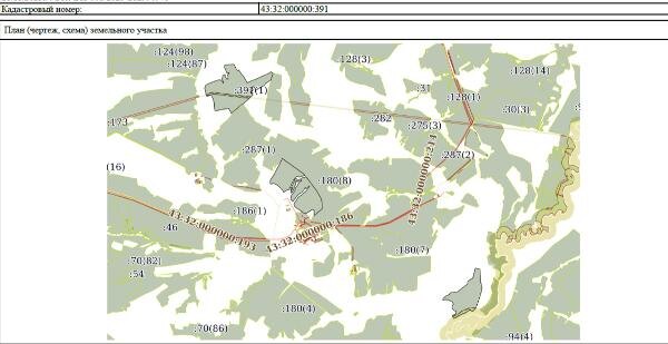 Название: кадастровый номер: 43:32:000000:391 Местоположение: Российская Федерация, Кировская область, муниципальный район Сунский, сельское