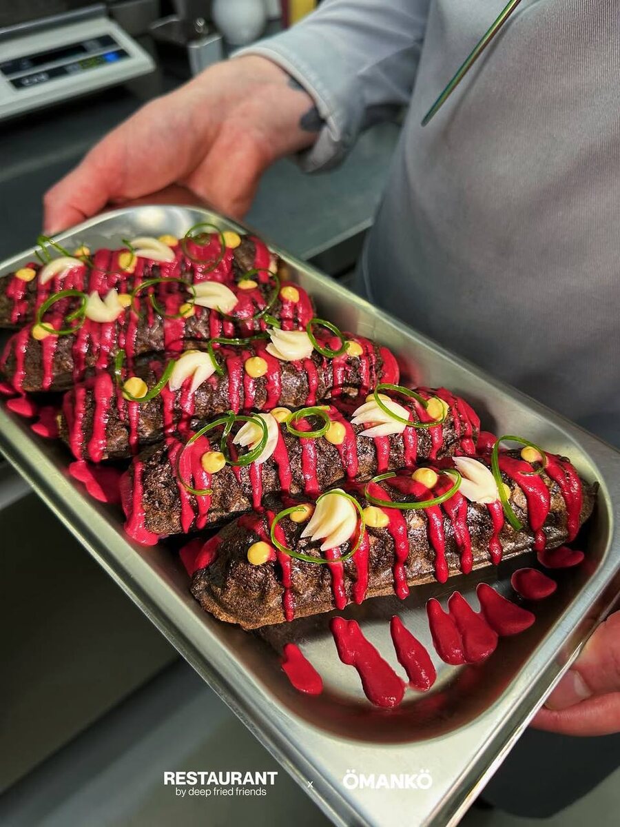 До 1 января в DFF будут варить борщ, придуманный вместе с ребятами из ÖMANKÖ. Его фишка – томленые говяжьи хвосты, а еще комплиментарный бородинский корн-дог со свекольным кетчупом.
