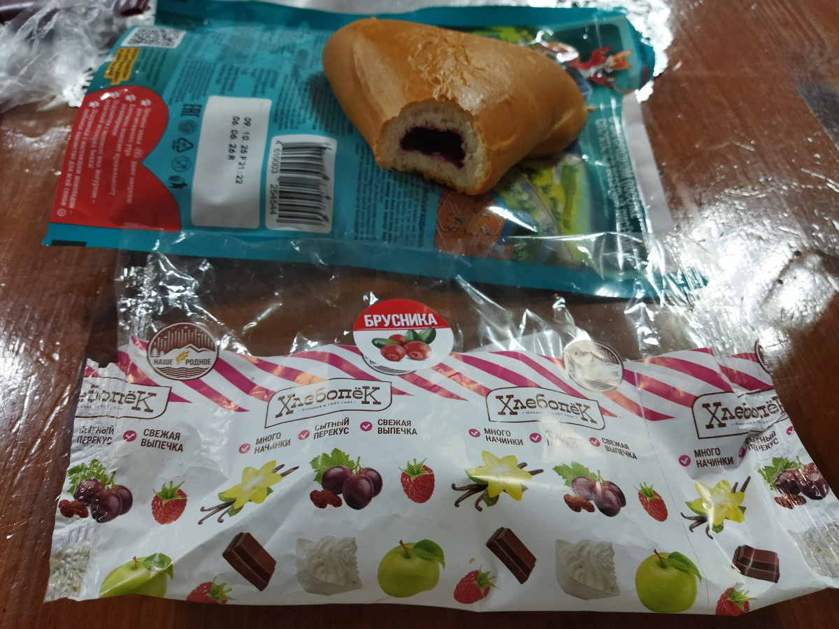 Фотография. Пирожок с брусникой местного комбината "Хлебопëк".