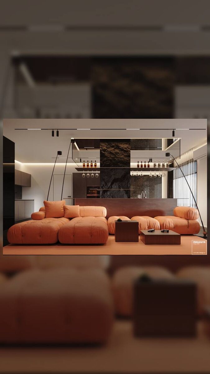 Когда стиль и функциональность говорят на одном языке Проект квартиры в ЖК «Полюса», застройщик «СК+» — идеальное сочетание динамичной энергии и эстетики премиального интерьера. В основе — смелое использование контрастных темных и насыщенных терракотовых оттенков, которые создают атмосферу уюта и драйва одновременно. Объемные модульные диваны приглашают к отдыху, а проработанные детали — от текстурных акцентов на стенах до эффектного освещения — делают пространство функциональным и комфортным. Прикоснитесь к дизайну класса А: портфолио реализованных проектов — на сайте magentastudio.ru Magenta
