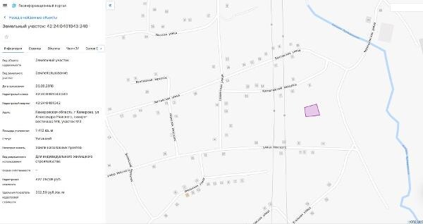 Название: Земельный участок, пл.1412 кв.м, кадастровый №42:24:0401043:240, разрешенное использование: для индивидуального жилищного