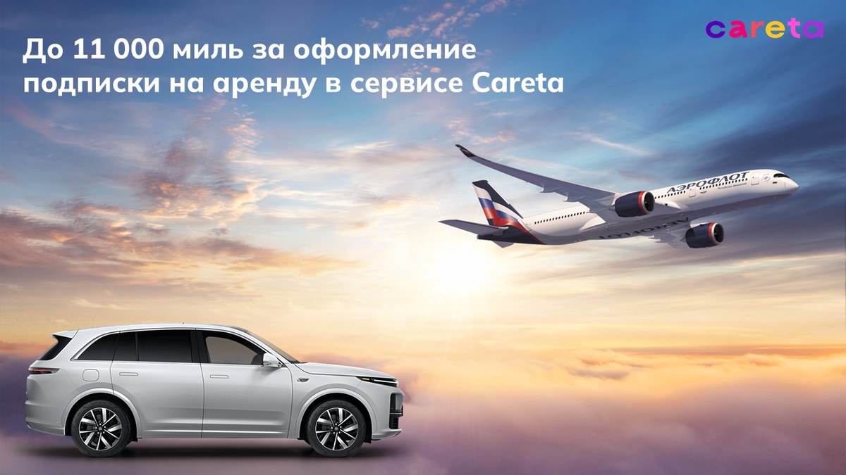 ВНИМАНИЕ, все фанаты путешествий! Сервис подписки на автомобили CARETA теперь является партнером программы «Аэрофлот Бонус». Это значит, что ваша повседневная поездка может стать шагом к следующему путешествию. Получайте до 11 000 миль за оформление подписки! Как накопить мили: 5 500 миль — за подписку до 64 999 ₽/мес; 7 000 миль — за подписку от 65 000 до 129 999 ₽/мес; 11 000 миль — за подписку от 130 000 ₽/мес; 3 000 миль — за продление подписки. В стоимость подписки уже входит: - Полное обслуживание авто. - Сезонная замена и хранение шин. - Госпошлина, налоги и регистрация. - КАСКО, ОСАГО, ТО. - Круглосуточная поддержка. С тебя только права и паспорт — остальное мы берем на себя! Оформляйте подписку на автомобиль в Careta, копите мили и летайте чаще с «Аэрофлот Бонус»! С подробными условиями начисления миль вы можете ознакомиться на сайте