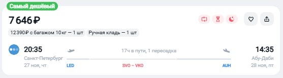✈️Санкт-Петербург - Абу-Даби (ОАЭ), в одну сторону с пересадкой в Москве за 7650 рублей 27 ноября - https://checkintime.ru/t00m 🏖 Поиск туров | ✈️Авиабилеты