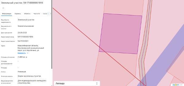 Название: Земельный участок с кадастровым номером 54:17:000000:1918 площадь 2498 по адресу Новосибирская область, Маслянинский муниципальный