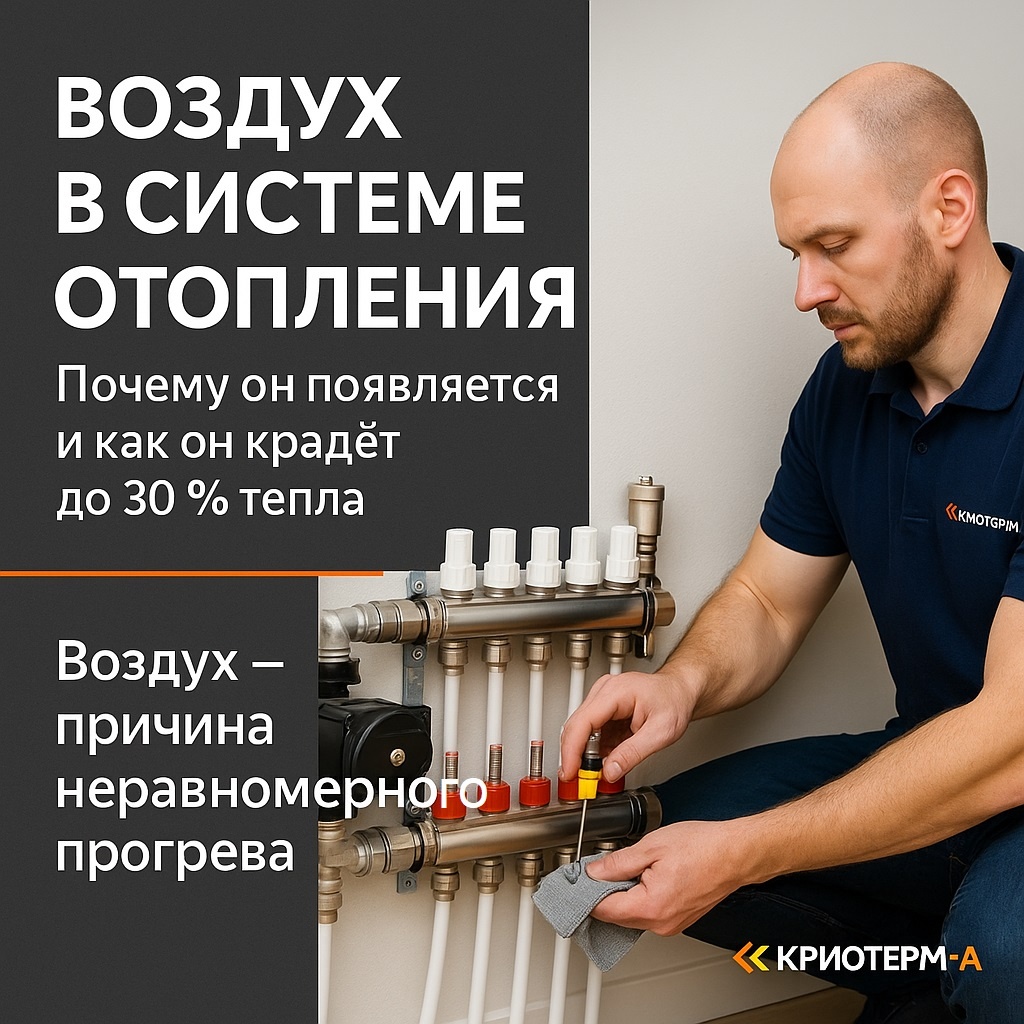 Особенно часто это происходит в домах с тёплыми полами, где много длинных контуров. Даже минимальная неплотность в фитинге или кране вызывает «подсос» воздуха.