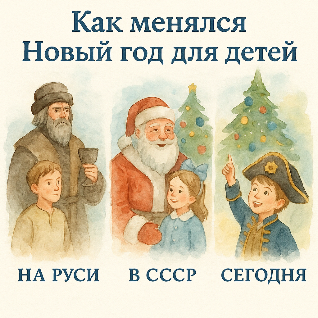 Почему отношение к детям менялось столетиями? Новый год — главный детский праздник, но так было далеко не всегда. Сегодня мы легко представляем детей вокруг ёлки, подарки, ожидание чуда. Однако путь к этому образу был долгим: традиции менялись, праздник запрещали, возвращали и переосмысляли заново. Разбираемся, как Новый год стал именно детским праздником и почему это важно понимать родителям. Новый год на Руси: праздник взрослых, а не детей. - До XVIII века Новый год в России вообще не был связан с детьми. - До 1700 года Новый год отмечали не 1 января. - В 1699 году Пётр I своим указом перенёс начало года на 1 января и ввёл европейские обычаи: украшение домов еловыми ветвями, праздничные гуляния. Но даже после этого праздник оставался взрослым. Ёлка как символ зимнего торжества прижилась только к XIX веку. То есть детского компонента в празднике почти не было: ни подарков, ни детских утренников, ни образа «добрых сказочных героев». СССР: момент, когда Новый год стал детским. После р