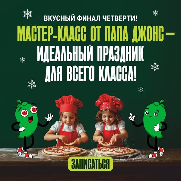 Запишите класс на вкусный мастер-класс от Папа Джонс — пицца, радость и счастливые улыбки ждут!