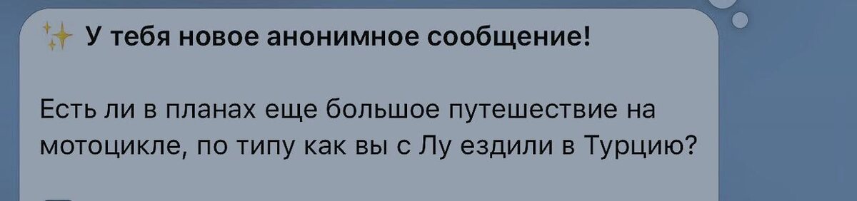 Есть конечно. Следующий теплый сезон уже почти до августа распланирован. А вообще я мечтаю уехать на моте куда нибудь прям на пару месяцев с Марси, но в моих реалиях это пока невозможно. Месяц максимум. + во все свои последующие путешествия я уезжаю одна. В прошлый раз, когда мы с Лу поехали в Турцию — было спонтанным решением и мы обе обладали средствами и временем путешествовать. Да, это был крутой перформанс, который не повторить, но можно сделать что-то новое и классное! Пс в этом сезоне я окончательно поняла,что каталка в городе мне стала совсем не интересна и поэтому я на все приглашения покататься не отвечала. ПСС забегая вперед — катаюсь на спорте потому что хочу и могу, для меня нет мотоцикла удобнее чем спорт (хотя и спорт туристы бывали) как придет время и спина посыпется в трусы, только тогда я подумаю)