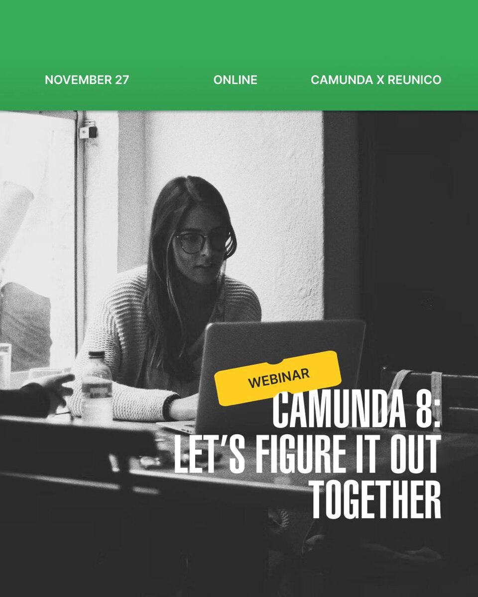 Уже завтра — вебинар Camunda 8: Let’s Figure It Out Together 🔥 Напоминаем, что завтра состоится наш открытый онлайн-вебинар, посвящённый ключевым возможностям Camunda 8.8, архитектурным изменениям, использованию AI в оркестрации процессов и подходам к миграции с Camunda 7 → 8. Эксперты Camunda и Reunico поделятся практическим опытом, разберут основные технические аспекты и ответят на вопросы участников в прямом эфире. Если вы работаете с процессной автоматизацией, DevOps, архитектурой или хотите глубже разобраться в Camunda 8 — этот вебинар вам точно пригодится. 🗓 Дата: 27 ноября ⏰ Время: 15:00 (GMT+5) Вы всё ещё можете зарегистрироваться на вебинар. #Camunda #Reunico #Camunda8 #CamundaCommunity #BPM #AI #ProcessAutomation #CentralAsia #Webinar