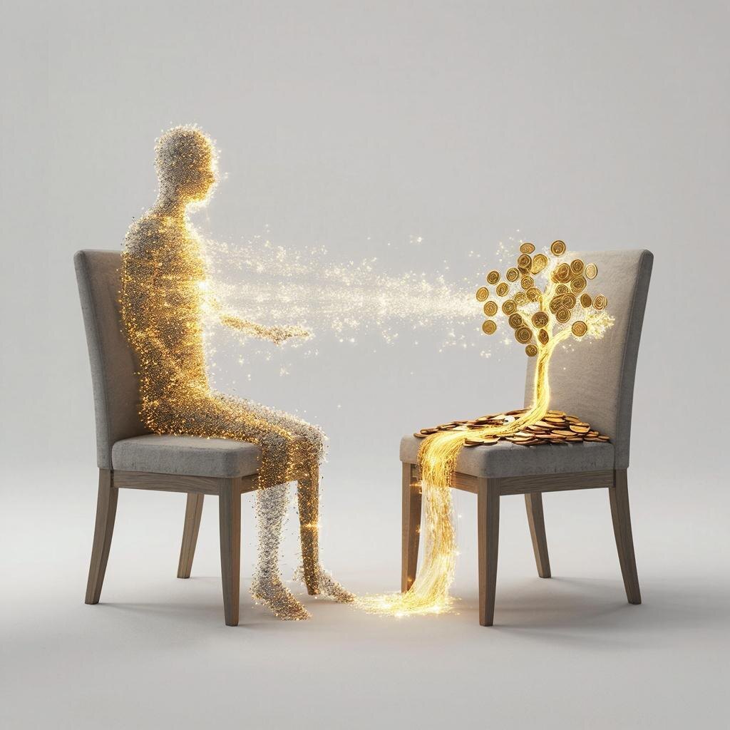 - Завершение и интеграция. После 5-10 минут диалога вернитесь на свой стул («Я»). Поблагодарите Деньги за этот разговор. Спросите их: «Что я могу сделать для нашего более легкого взаимодействия?» Послушайте ответ внутри себя. Сделайте несколько глубоких вдохов и выдохов, «вернитесь» в комнату.