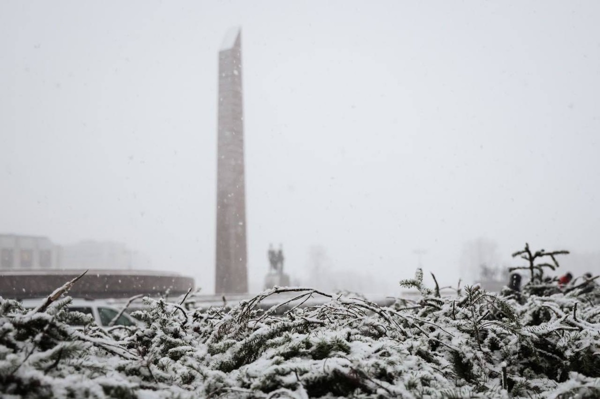 На площади Победы еловым лапником укрыли более 3000 парковых роз