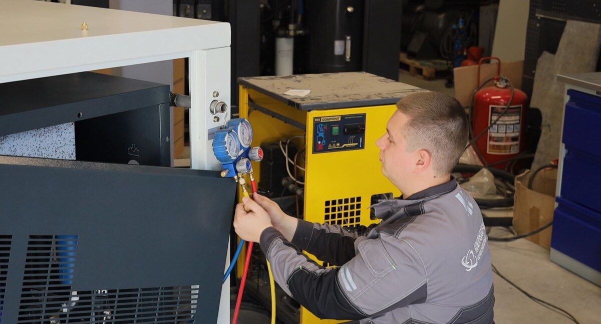 Распространенная история, когда компрессор, который полгода работал без нареканий, с наступлением жары вдруг начинает перегреваться и уходить в аварию. Или другая сторона этой же медали: в первые заморозки давление в пневмосистеме падает, оборудование покрывается инеем, а из ресивера вместо конденсата вытекает ледяная кашица. Владелец в панике ищет причину в сложной механике, а она часто кроется в сезонных «мелочах», которые упустили. Простая, но не всегда очевидная истина: 90% сезонных проблем вызваны поломками, в корне которых лежит изменение свойств двух ключевых компонентов — воздуха и масла. Летом воздух горячий и разреженный, а зимой он холодный и плотный. Масло летом разжижается, зимой же густеет. И вся работа компрессора строится вокруг этих констант. Летом объявляем войну перегреву Главный враг винтового блока и электродвигателя в жару — это нарушенный теплоотвод. Стандартные системы охлаждения рассчитаны на условные +25°C. Когда в цеху становится +35°C, их эффективность резк
