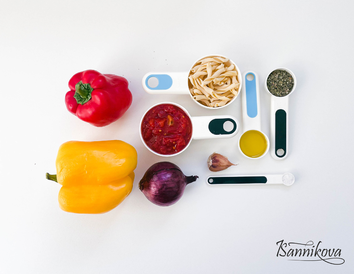 Рецепт пошагового приготовления джемелли с болгарским перцем в домашних условиях с фотографиями Ссылка на рецепт: Список ингредиентов: 1. чеснок раздавить плоской стороной ножа, лук нарезать мелкими квадратиками, перцы крупными квадратами 2. сковороду нагреть на среднем огне с малом, затем добавить лук, обжарить 2-3 минуты, постоянно помешивая 3. далее добавить перцы, чеснок и базилик, жарить 4-5 минут, постоянно помешивая На заметку:если у вас есть сухой базилик, обязательно используйте его, вместо сухого. 4. добавить томаты в собственном соку, довести до кипения, тушить на огне чуть ниже среднего под закрытой крышкой, в течении 30-35 минут 5. пасту отварить до готовности 6. спустя 30-35 минут овощную массу убрать с огня, проблендерить и пропустить овощное пюре через сито 7. у вас получится вот такой соус из болгарского перца 8. горячую пасту и соус перемешать в чаше, сверху посыпать пармезаном и подать к столу