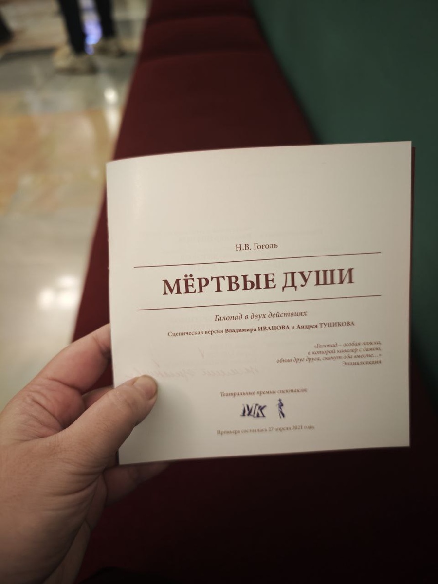 "Мертвые души" Театр Вахтангова ⏰2 часа 45 минут c 1 антрактом Театр им. Вахтангова представил своё видение "Мертвых душ". Вахтанговцы не впервые обращаются к наследию Николая Гоголя, но эта интерпретация выделяется своей оригинальностью. В постановке задействованы всего четверо актеров, двое из которых появляются лишь в эпизодах. Основное внимание приковано к блистательному дуэту Марии Ароновой и ее сына Владислава Гандрабуры. Их игра – это не просто исполнение ролей, а настоящая феерия, динамичная и прекрасная, создающая ощущение волшебного преображения в вихре музыки и танца. Достижению этого эффекта способствует, безусловно, сценография. В спектакле используются вращающийся круг, кулисы, ширмы-экраны, за которыми, словно в танце, исчезают одни персонажи и появляются другие. Маски, скрывающие лица героев, символизируют типичность характеров, а маска Чичикова с носом и парик намекают на близость к образу самого Гоголя. Зеркало на сцене умножает образ Чичикова, отражая пустоту окруж