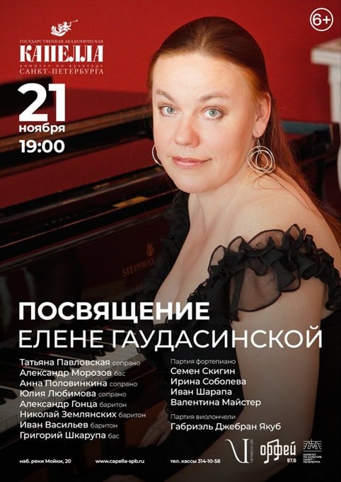 Концерт-воспоминание 21 ноября 2025 в Санкт-Петербургской академической Капелле состоялся концерт памяти Елены Гаудасинской (1967–2019) — пианистки, Заслуженной артистки России, доцента Санкт-Петербургской консерватории, основателя конкурса-фестиваля «Три века классического романса» и директора конкурса оперных певцов «Санкт-Петербург». Идею и программу вечера создали её друзья, коллеги и ученики. https://www.classicalmusicnews.ru/reports/concert-memory/?utm_source=cmn_own&utm_medium=telegram 🎼 ClassicalMusicNews.Ru | Telegram | ВК | МАКС