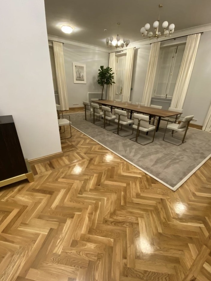 Северный речной вокзал – ключевое и самое крупное сооружение Канала им. Москвы (речные суда, отправляющиеся из канала, могли дойти до пяти морей). Площадь вокзала более 5000 кв. метров. «Реставрация вокзала стала крупнейшим проектом создания качественной городской среды в этом году.» С. Собянин, Мэр Москвы Основной целью #реставрации было сохранение первоначального облика вокзала с использованием в оформлении помещений современных технологий и материалов. Удалось сохранить большинство деталей интерьера и оригинальных элементов, а утраченные части были восстановлены. Компания Артпаркет приняла участие в восстановление штучного паркета в нескольких кабинетах. Общая площадь работ составила 250 кв. м. Мы выполнили работы по восстановлению паркетных полов общей площадью 200 кв. м в нескольких помещениях здания вокзала. Был уложен штучный #паркет из дуба. #интерьер