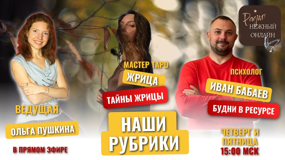 Лёгкий контент на радио "Нежный онлайн" в наших рубриках: ⏰ Четверг, 15:40 - 16:10 🔴🔴🔴🔴🔴 ЭГОИЗМ ИЛИ ЛИЧНЫЕ ГРАНИЦЫ? ⭐️ рубрика БУДНИ В РЕСУРСЕ ☕️ с Иваном Бабаевым ⏰ Пятница, 15:00 - 15:35 🔴🔴🔴🔴🔴 ЭПОХА ПОТРЕБЛЕНИЯ: КТО и ЗАЧЕМ навязал нам идею покупок, кратно превышающих наши потребности ⭐️ рубрика ТАЙНЫ✨ЖРИЦЫ 🔥 если тоже включаете фоном для настроения!
