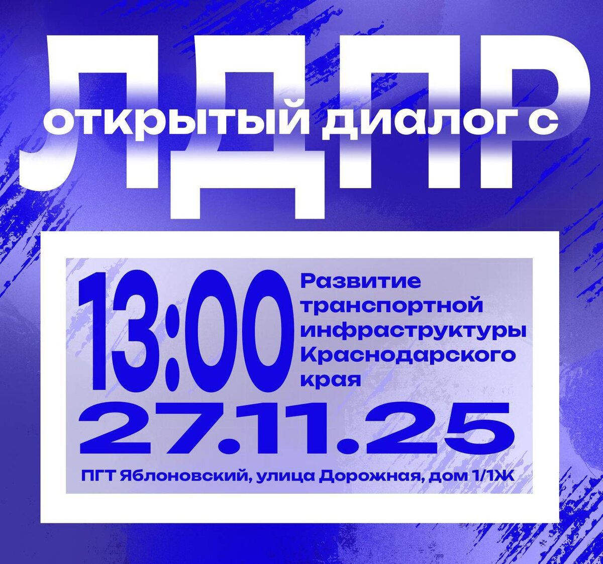 π¬ ΠΡΠΊΡΡΡΡΠΉ Π΄ΠΈΠ°Π»ΠΎΠ³ Ρ ΠΠΠΠ ΠΠ°Π²ΡΡΠ°, 27 Π½ΠΎΡΠ±ΡΡ, Π² 13:00 Π² ΠΏΠ³Ρ. Π―Π±Π»ΠΎΠ½ΠΎΠ²ΡΠΊΠΈΠΉ, ΠΏΠΎ Π°Π΄ΡΠ΅ΡΡ ΠΠΎΡΠΎΠΆΠ½Π°Ρ ΡΠ»ΠΈΡΠ° 1/1Π, ΡΠΎΡΡΠΎΠΈΡΡΡ ΠΊΡΡΠ³Π»ΡΠΉ ΡΡΠΎΠ» Π½Π° ΡΠ΅ΠΌΡ Β«Π Π°Π·Π²ΠΈΡΠΈΠ΅ ΡΡΠ°Π½ΡΠΏΠΎΡΡΠ½ΠΎΠΉ ΠΈΠ½ΡΡΠ°ΡΡΡΡΠΊΡΡΡΡ ΠΡΠ°ΡΠ½ΠΎΠ΄Π°ΡΡΠΊΠΎΠ³ΠΎ ΠΊΡΠ°ΡΒ». πΉ Π Ρ