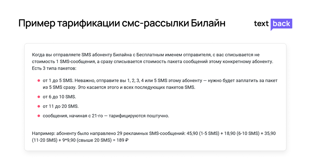 Для бизнеса, который обычно отправляет 1–2 сообщения в месяц, это резко увеличивает расходы. Посмотрим на примере рекламных и сервисных SMS Билайн: