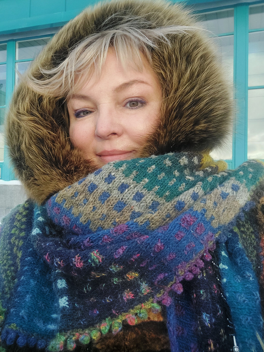 Вдохновилась работами мастерицы Андреа Моури, возмечтала сотворить себе бактус по образу и подобию её сочинений. Вязать решила вот здесь и сейчас, потому что надо! При таком раскладе некогда, как вы понимаете, разыскивать описания. Поэтому у меня получилось совершенно неправильное творение: это и не бактус, и не шаль, и не палантин, но, как по мне, дык, очень славная история. Которая мне лично очень даже по душе. Поскольку носить это вязаное уютное изделие можно и как пресловутый "замотыш", закутав как следует шею, и как платок - тут тебе и ухи в тепле, и шею, опять же, не продует)) Размах крыльев у моей "птицы" приличный - каждое по 1, 60 см...В общем, очень меня радует результат. Чудесная шерсть дундага традиционно показала себя во всей красе переходов оттенков. В унисон ей гармонично звучат "волны" кауни, итальянского твида и мохера. Вообще такие вот творения отличный способ пристроить имеющиеся у каждой мастерицы, остатки пряжи от других проектов. По краю обвязала свое сочине