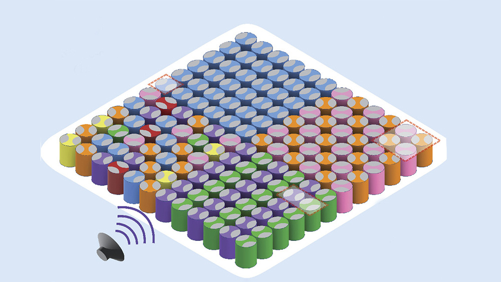 Звуковые волны, проходя через материал, отражаются от вогнутых поверхностей столбов. А поскольку каждый столб можно настраивать индивидуально, возникает практически бесконечное число возможных траекторий для распространения звука через решетку.