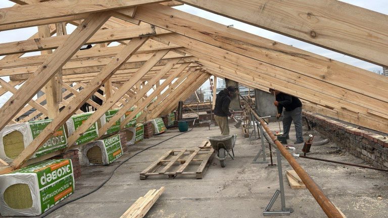 На поврежденной пожаром кровле демонтировали пострадавшие конструкции. Рабочие почти полностью восстановили кирпичную кладку. Порядка 20 человек ежедневно с 8 утра до 19 часов трудятся на крыше дома на проезде Больничном. Как сообщают в мэрии, на кровле на 80% восстановили поврежденную кирпичную кладку, установили новые деревянные балки. На 50 % выполнили работы по устройству стропил и стягивающего бруса. Завершили большую часть работы по монтажу системы отопления. Работают бригады в усиленном режиме, без перерыва на выходные дни. Напомним, перед ними стоит задача восстановить крышу дома в срок до 25 декабря. Как писал «Оренбург Медиа», пожар, начавшийся в квартире пятого этажа дома на Больничном проезде 12 ноября быстро перекинулся на крышу. Площадь возгорания составила более тысячи квадратных метров. У дома выгорела кровля, обвалились карнизы, пострадали от огня и квартиры. После пожара в многоэтажке на Больничном ввели режим повышенной готовности в пределах горевшего дома. Позже жит