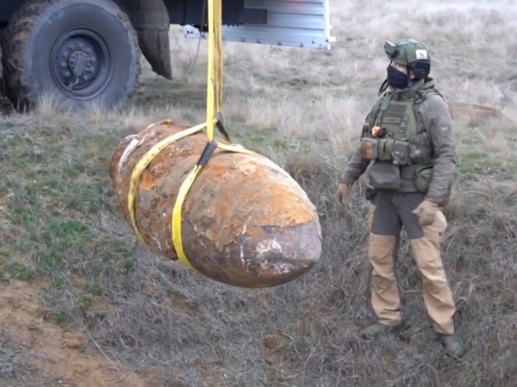 В Волгоград прибыл пиротехнический расчет Донского спасательного центра МЧС России. Саперы приехали для уничтожения с фугасной авиабомбы SC-1000, которая была найдена в Центральном районе Волгограда 21 ноября. Снаряд пролежал в земле более 80 лет, но все еще мог представлять опасность. Как сообщили Волжский.ру в пресс-службе ГУ МЧС по региону, специалисты с помощью крана погрузили бомбу на грузовик и вывезли на безопасное расстояние от города. На пустыре снаряд уничтожили путем наложения заряда и управляемого подрыва. ГУ МЧС по Волгоградской области показало захватывающие кадры работы саперов.