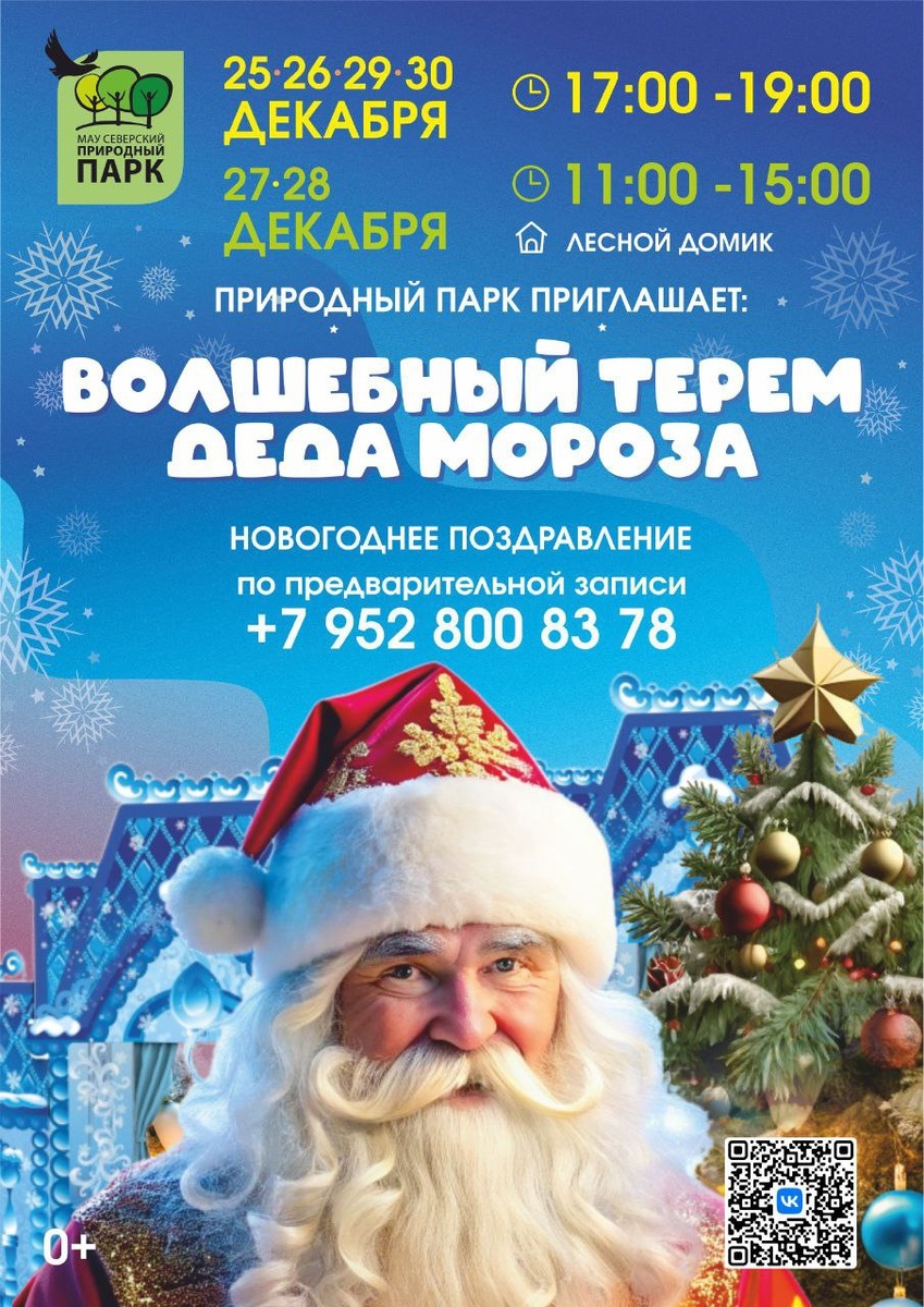 ❄ Дед Мороз приглашает в свой волшебный терем с 25 по 30 декабря! 🎅 Погрузитесь в мир зимних чудес, где вас ждет настоящая сказка с участием доброго волшебника. Каждого гостя Дедушка Мороз встречает лично, готовый выслушать самые заветные мечты и желания. ☎ Посещение возможно только по предварительной записи. Выберите удобное время, позвонив по телефону +7 952 800 83 78. Окунитесь в атмосферу новогоднего настроения и дарите радость себе и вашим близким. 🥳 Не упустите возможность подарить тот самый, желанный подарок от настоящего зимнего кудесника! Мы ждем вас в нашем волшебном тереме, где сбываются мечты! #ПаркСеверск #СеверскАфиша #ПриемнаяДедаМороза #ДедМороз #НовыйГод
