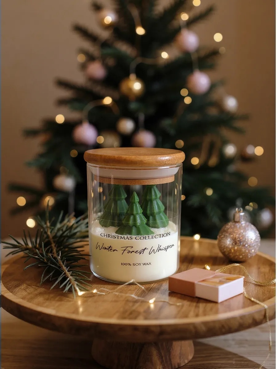 Представьте: мягкий свет пламени, нежное мерцание через стеклянные стенки и волшебный аромат хвои, который наполняет всю комнату. Эта свеча создает именно такую атмосферу — уютную, праздничную, по-настоящему зимнюю. В ее составе только натуральный соевый воск, что делает горение особенно чистым и безопасным.