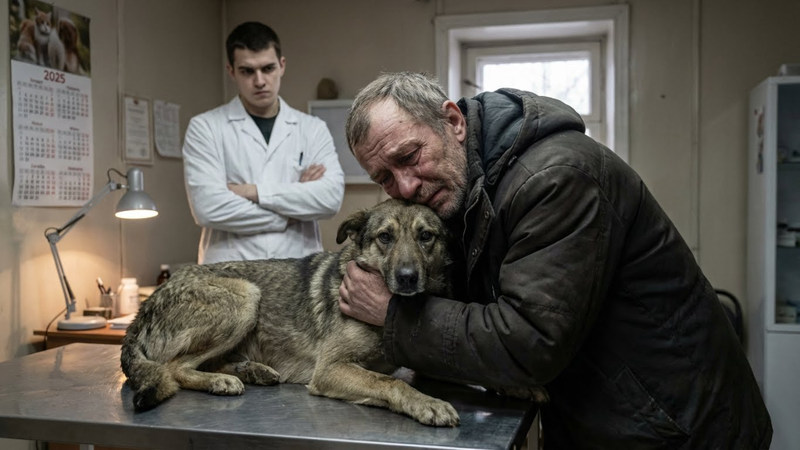 Врач заметил его ещё до того, как старик дошёл до дверей. Сначала — по тому самому пёстрому пледу и старому пальто, которое он помнил с вчерашнего приёма. Потом взгляд его задержался на морде Дружка — тот выглядел ещё хуже: глаза почти закрыты, дыхание частое, поверхностное. И, наконец, он встретился глазами со стариком. И в этих глазах было не только усталое отчаяние — там была какая-то тихая, беззащитная решимость, от которой внутри у врача что-то кольнуло.