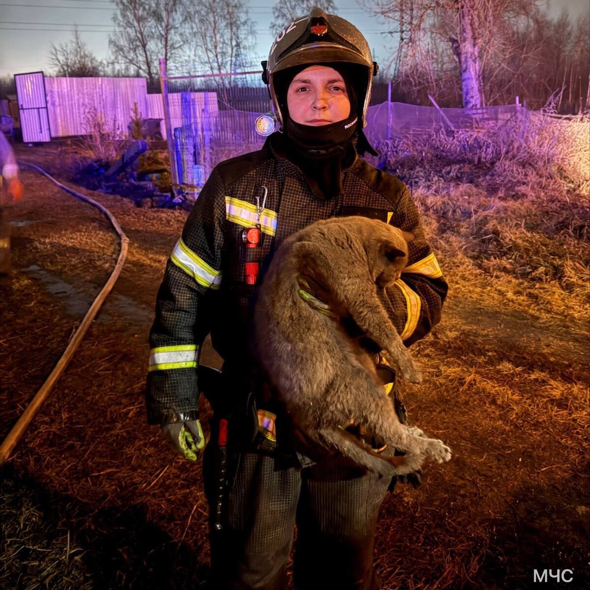 🥺 Пожарные спасли упитанного котика из охваченного огнём дома в посёлке Исаково