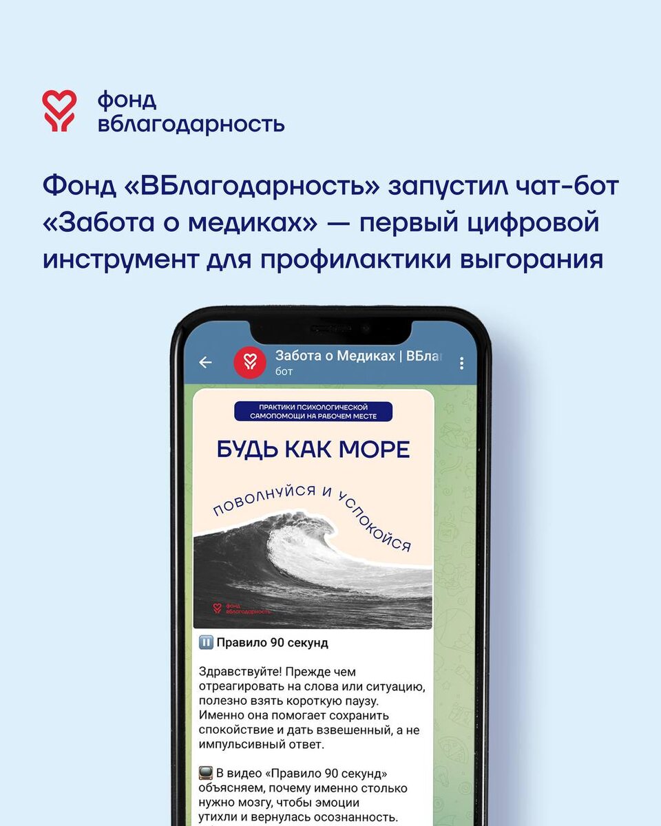 Фонд «ВБлагодарность» запустил чат-бот «Забота о медиках» — первый цифровой инструмент для профилактики выгорания среди медработников