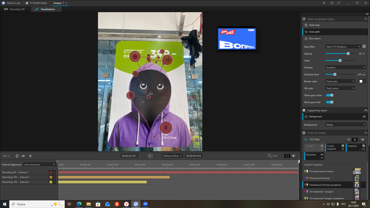 Banners with clear visual hierarchy generate 40% fewer saccades and 60% more predictable gaze trajectories. Chaotic saccades indicate unclear composition or information overload. We're on RUTUBE: https://rutube.ru/channel/15929939/