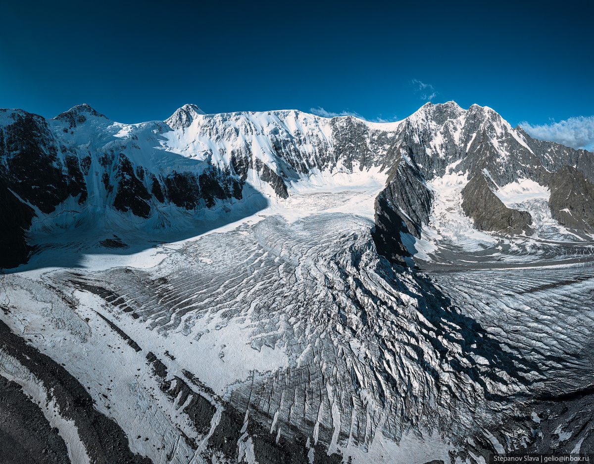 Аккемский ледник расположен на склоне Белухи – самой высокой горы Алтая Ледник питают реку Аккем, которая начинает свой путь прямо из-под ледяного языка. За последнее столетие ледник заметно отступил, оставив выраженные морены и оголённое русло. В толще льда проходят глубокие трещины и ледопады, из-за чего маршрут к Белухе считается сложным и опасным. Аккемский ледник состоит из нескольких потоков, которые сходятся в единую ледовую массу, образуя характерный «язык». Мой телеграм-канал: @slavastepanov