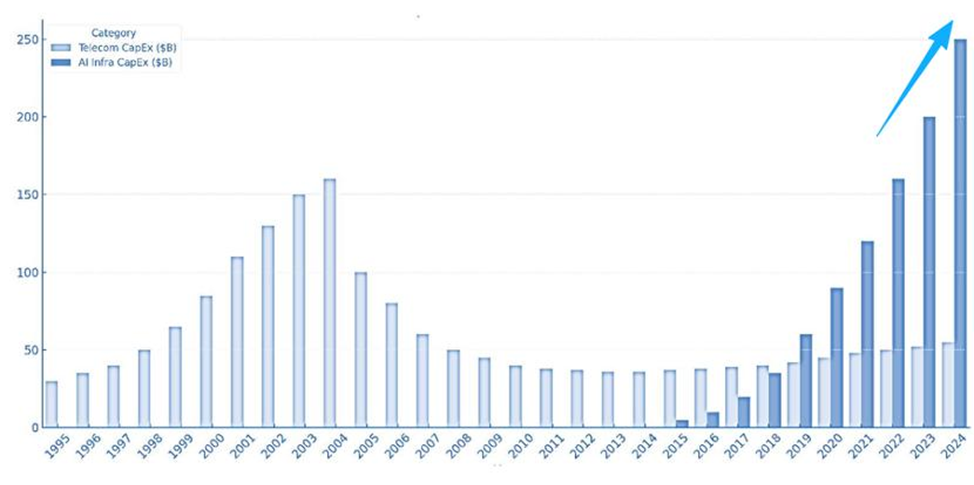 Да, абсолютные суммы CAPEX сейчас больше, чем во времена доткомов, но и масштаб бизнеса, и качество денежного потока несопоставимы. По этой логике:
