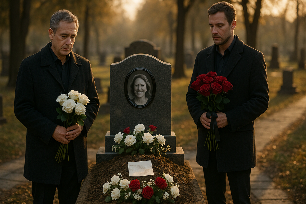 Виктор стоял у могилы жены. Седьмой день после похорон. Венки уже завяли, потемнели от дождя. Он принёс свежие розы — белые, её любимые.