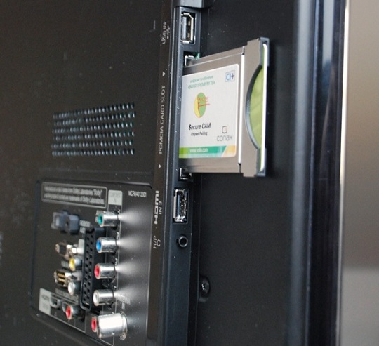Слот CI/CI+ (Common Interface). Этот слот расширения, визуально напоминающий картридер, предназначен для установки CAM-модуля. В такой модуль, в свою очередь, вставляется смарт-карта от поставщика услуг платного телевидения. Наличие этого слота дает возможность просматривать закодированные каналы без применения внешней приставки. Существует две версии стандарта: CI и более новая CI+, которая гарантирует улучшенное шифрование и защиту контента.