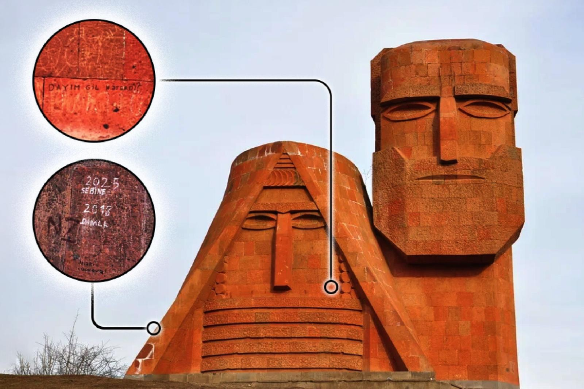 Скульптура “Мы - наши горы” (Татик-Папик - Бабушка и дедушка) в Арцахе (находится под контролем Азербайджана), которую армянское население Арцаха, насильственно перемещенное в Армению, считает символом Нагорного Карабаха, подверглась вандализму со стороны Азербайджана с нанесением непристойных надписей на лицевой стороне памятника. Об этом сообщил Научно-аналитический фонд “Гегард”, представив распространенные в социальных сетях документальные видеоматериалы, опубликовал фотографии, на которых видны непристойные надписи на азербайджанском языке. В частности, об этом написал в своем микроблоге в X азербайджанский журналист талышского происхождения Рагим Шалиев, опубликовав видеоматериал с памятником. Один из примеров ненавистнических высказываний на на лицевой стороне памятника, написанных на азербайджанском языке, — «itləri qovluq» — переводится как: “Мы прогнали собак". “Исторический памятник “Мы — наши горы”, считающийся символом Арцаха, подвергся вандализму со стороны азербайджа