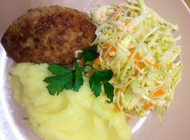 Понедельник: куриные котлеты с картофельным пюре и салатом из свежих овощей