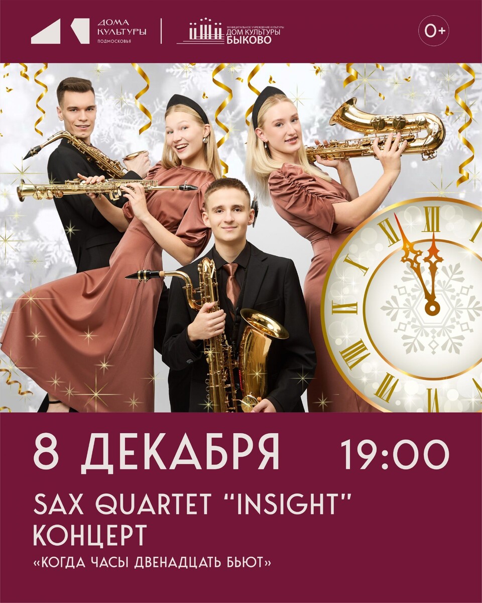 ✨ Концерт «Когда часы двенадцать бьют» ⏰«Когда часы двенадцать бьют» – не просто вечер классической новогодней музыки. Это концерт-погружение, на котором слушатели вместе с Sax Quartet INSIGHT и хитами академической и эстрадной музыки проживут самые праздничные, таинственные и захватывающие мгновения торжества. 🎷 Не пропустите это уникальное путешествие в атмосферу новогодней ночи! 🚫 Возраст: 0+ 📆 08.12.2025 🕒 19:00 🏢 Дом культуры «Быково» 📍 Московская обл., г. Подольск, п. Быково, ул. Школьная, д. 8 💰 Вход свободный❗️ ⭐Поддержать канал голосом 🍰Где поесть в Подольске ✅ Мероприятия Подольск https://dzen.ru/id/66ed500f7b5671493eca3fd6 http://vk.com/podolsk_events http://dzen.ru/podolsk_events