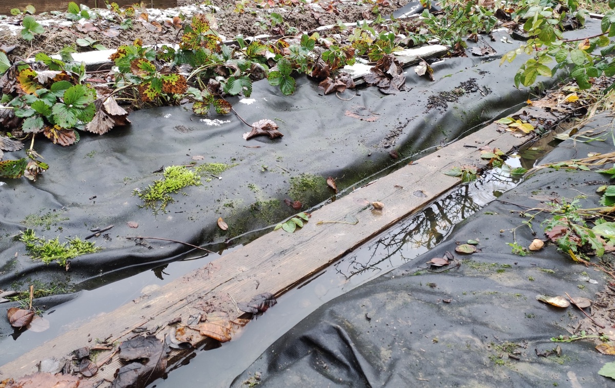На некоторое время я вынырнула из работы и занырнула в сад. Такой вот невольный каламбур получился, потому что в сад сейчас можно только реально занырнуть и пересечь вплавь)) Погода странная и непонятная - то ли осенняя зима, то ли зимняя осень. А воды у нас весь год такой избыток, что впору переходить на выращивание риса. В колодец страшно заглядывать - вода вровень с поверхностью. Вот честно - не припомню, чтобы у нас поздней осенью было столько воды. В межах вода: На тропинке вода: В цветнике тоже вода Если что, это на фото не выкопанные ямы, а наоборот - местами приподнятые кучки, я там хосты и пионы посадила! И уходить воде уже некуда, все дренажные канавы вдоль улицы полные. Кажется, скоро колодец выйдет из берегов... А в городе нарядили ёлки. И это так не вяжется с погодой! Кругом зеленая трава. Правда, при свете дня я еще елок не видела, так как мимо прохожу или сумеречным утром или темным вечером. И еще вижу их из окна электрички почти у каждой станции - красиво, но странно.