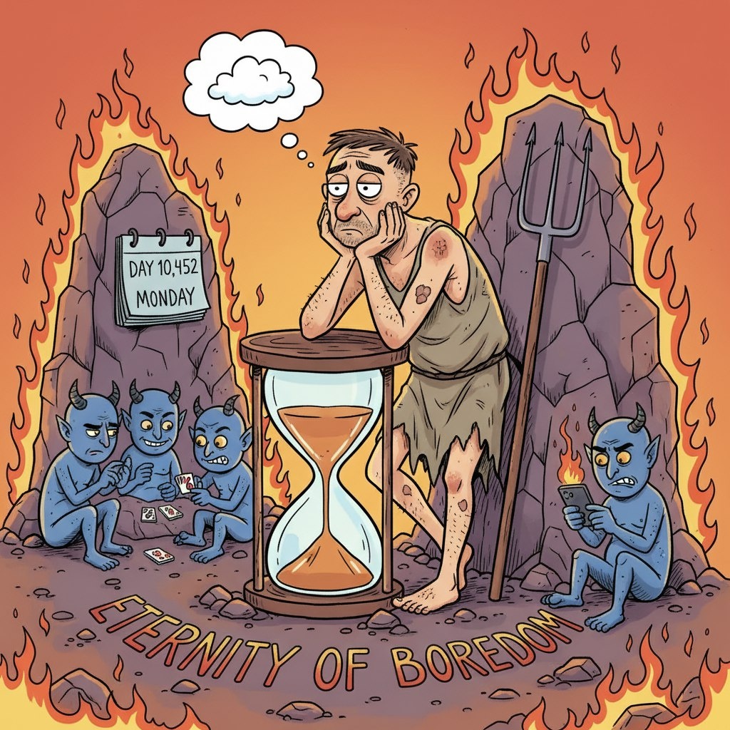 Но самое пикантное начинается дальше. Человеческое сознание штука адаптивная. Вы замечали, как быстро мы привыкаем к любому уровню дискомфорта? Первый день в аду - кошмар. Сотый год - рутина. Миллионный даже скучновато. Чтобы поддерживать страдание, нужно постоянно повышать градус. Это как наркомания, только наоборот: требуется все больше боли для того же эффекта. Экономически нецелесообразно.
