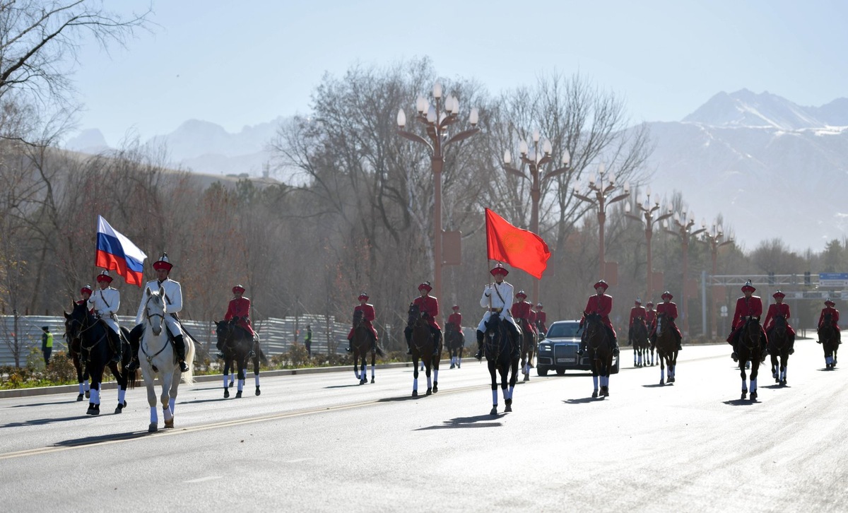 Автомобиль «Аурус» с Путиным в Бишкеке сопровождала кавалерия