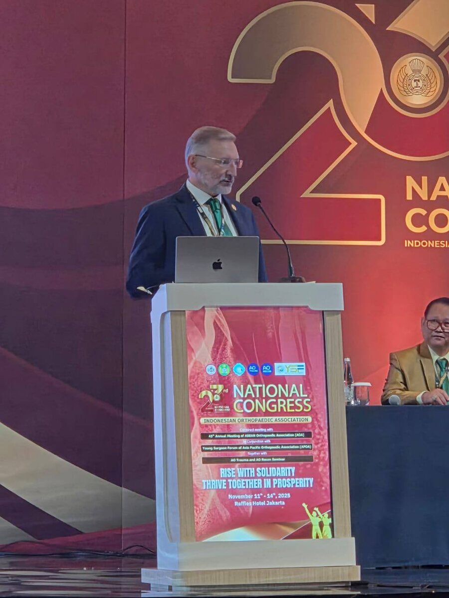 Международные презентации наших врачей В Джакарте состоялся 23-й Национальный конгресс Индонезийской ортопедической ассоциации (IOA), на котором выступил специалист Университетского клинического центра им. В.В. Виноградова (филиал) РУДН с мировым именем - профессор, врач - травматолог-ортопед, вертебролог, д.м.н. Сергей Васильевич Колесов. Доклад с результатами проводимых операций на тему «Динамическая коррекция сколиоза взрослого человека – это новая технология, способная изменить всё» вызвал волну интереса среди иностранных коллег. Уникальная технология сохранения подвижности позвоночника после операции стоит на порядок выше традиционной – ригидной, которая обездвиживает сращиванием позвонки между собой и отбирает возможность полноценной физической активности. В то же время динамический метод, разработанный Сергеем Васильевичем, позволяет за считанные недели пациенту (что тоже важно и уникально – взрослому!) не просто возвращаться к привычной, но абсолютно новой – активной жизни.