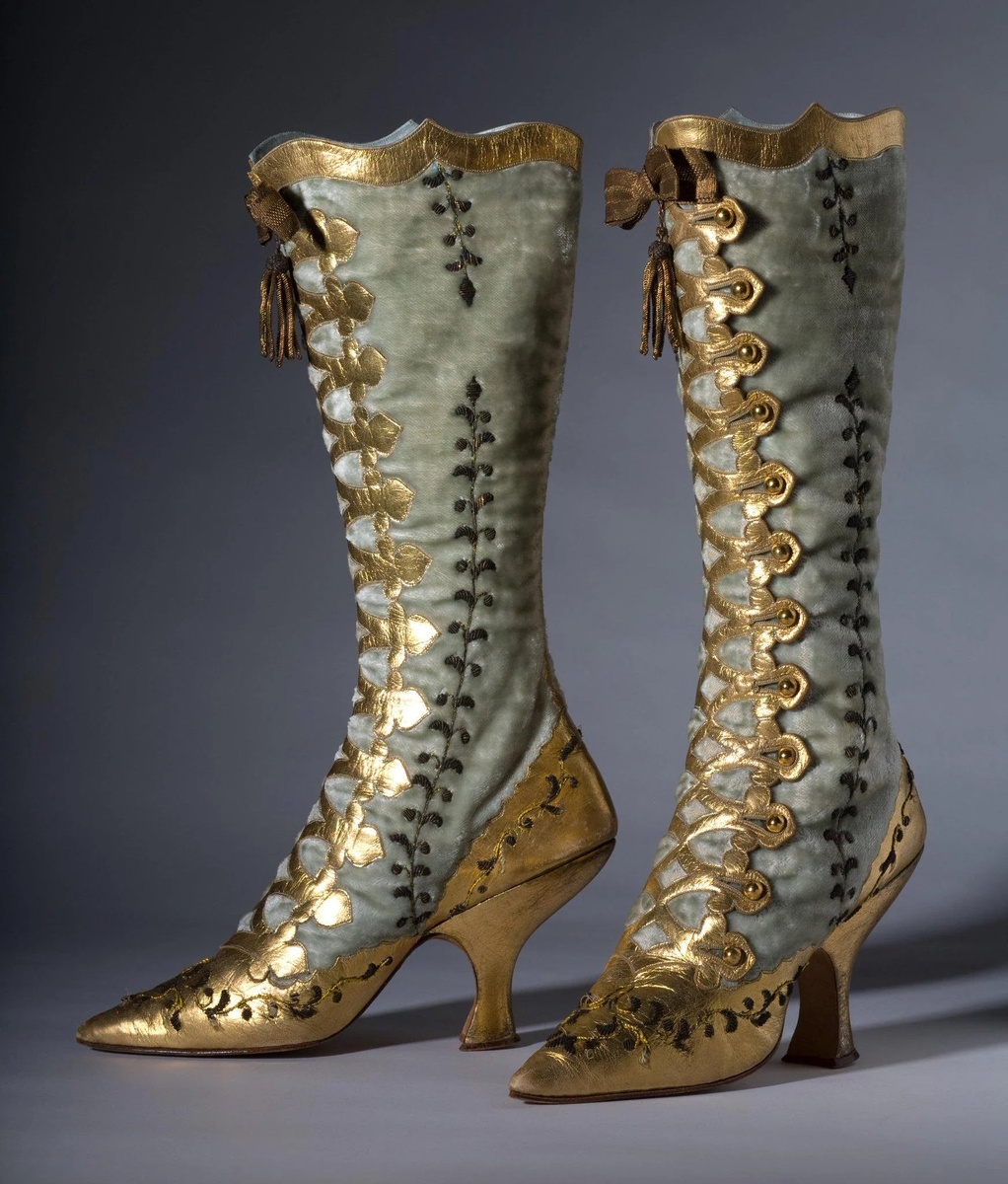👢 ВИКТОРИАНСКИЕ САПОЖКИ Это элегантные кожаные ботинки с бархатными вставками — типичная обувь европейской аристократки 1890-х годов. Производство: Швеция или Германия. ▪️ Материалы: натуральная кожа, шёлковые шнурки, декоративный бархат. ▪️ Детали: изящный каблук, ручная строчка, ажурная шнуровка. ▪️ Особенности: сохранили оригинальную фурнитуру и следы реставрации XIX века. 👉 Подписаться