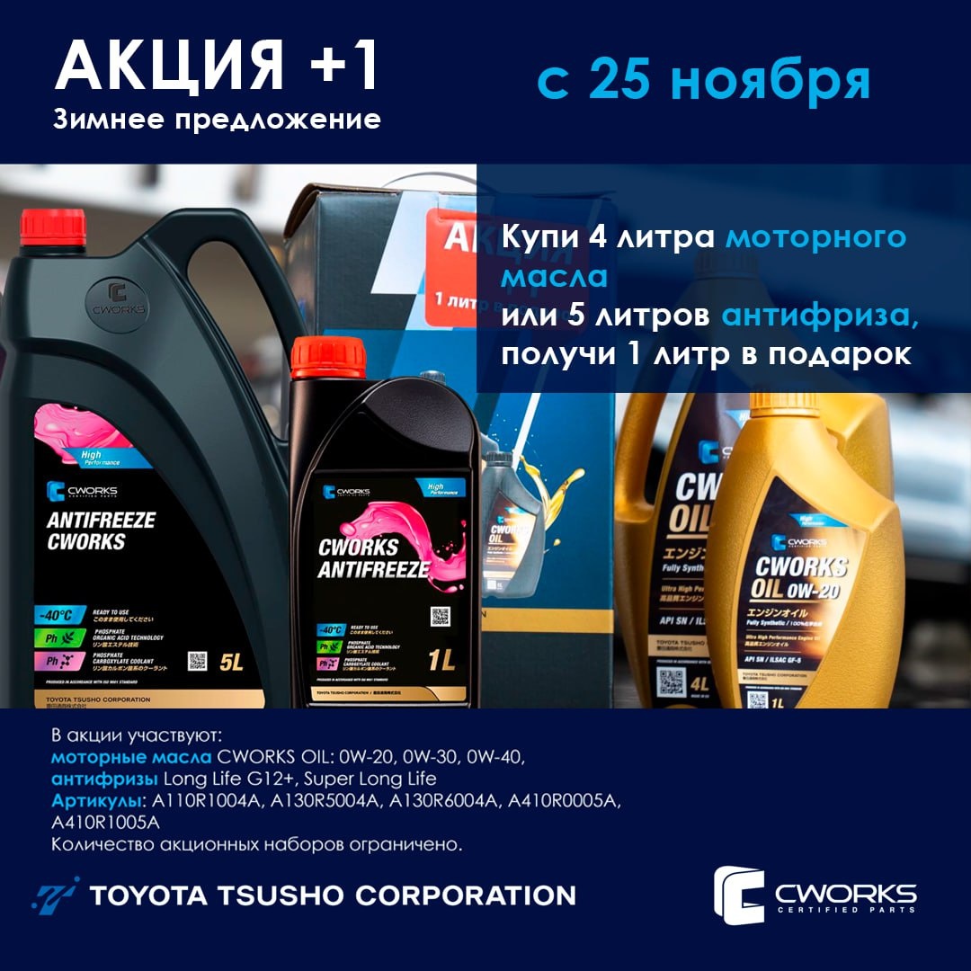 С 2️⃣5️⃣ ноября стартовала зимняя акция CWORKS ❄️ Покупайте специальные комплекты моторных масел и антифризов — получайте +1 литр в подарок 🎁 В акции участвуют: • CWORKS OIL 0W-20 / 0W-30 / 0W-40 (4L+1L) • CWORKS ANTIFREEZE SUPER LONG LIFE и G12+ (5L+1L) Промо-наборы доступны: — на маркетплейсах — в интернет-магазинах — у дистрибьютеров и в рознице — на СТО 🚗 Партнёры — в разделе «ГДЕ КУПИТЬ» на сайте CWORKS. Количество наборов ограничено ⚡️